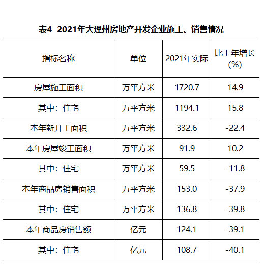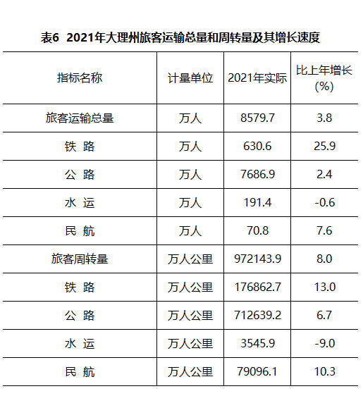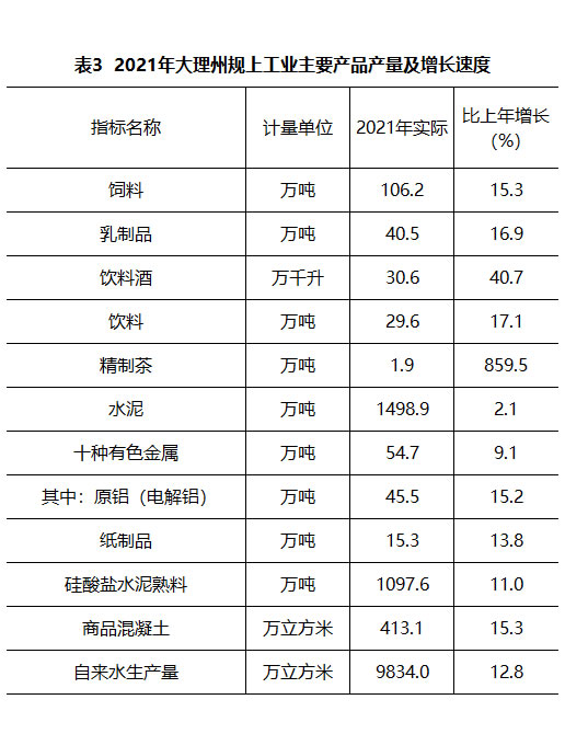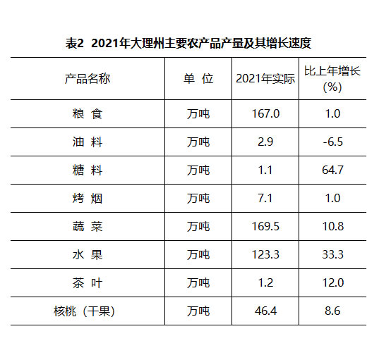 大理白族自治州2021年国民经济和社会发展统计公报