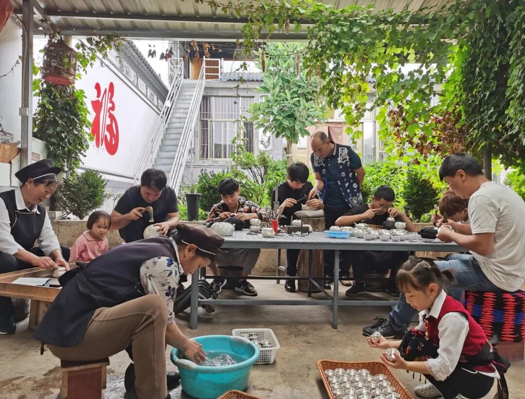 中央美术学院、中国地质大学(武汉)珠宝学院、云南艺术学院等14所高校先后与8家银器手工艺加工销售企业结对,挂牌设立银器锻制技艺教学实训基地。累计培养银器锻制从业者600余人次,吸引300多名新“新华人”慕名前来创业发展。