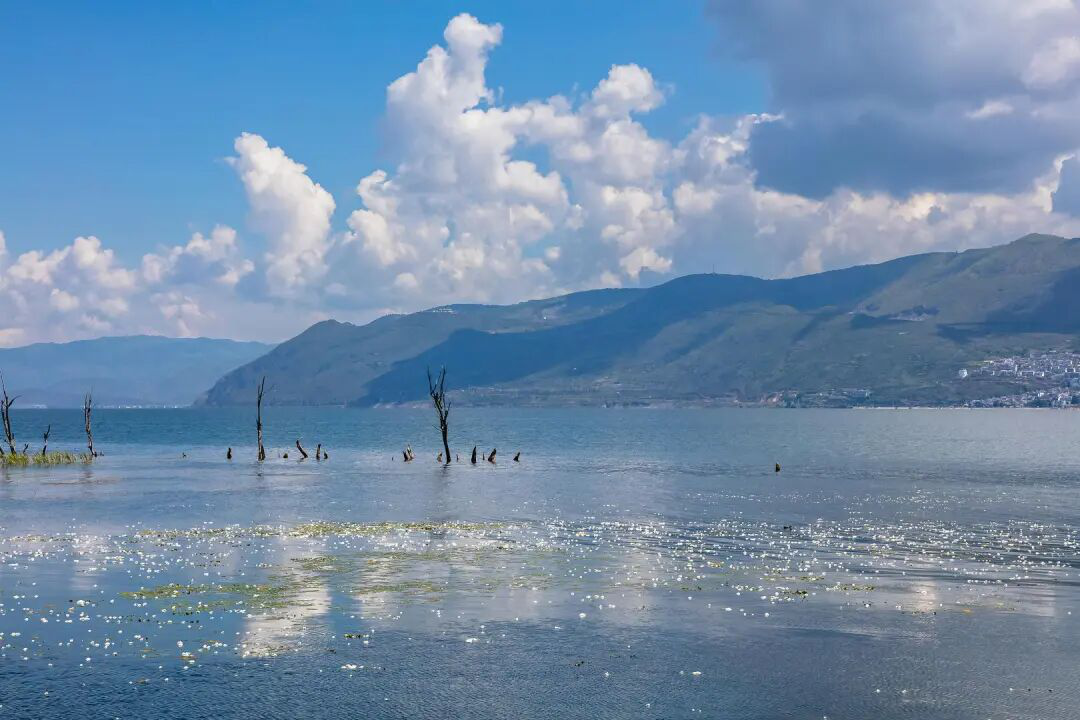 ▲大理洱海,对环境要求很高的海菜花在湖边绽放。