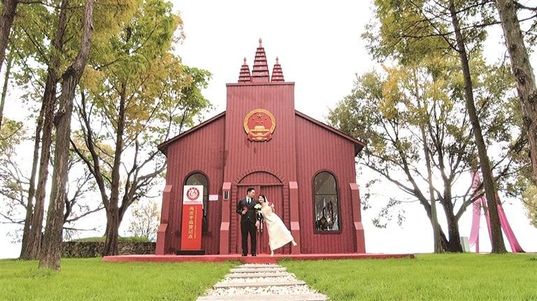 作为2024年初设立的特色婚姻登记点,海舌公园依托稀缺的自然景观和预约机制,迅速成为“网红登记地”。随着婚姻登记“全国通办”政策的实施,更加释放了大理对全国新婚人群的吸引力。“我们偏好轻松有氛围的婚礼仪式,更注重两个人的互动,而不拘泥于传统流程。”来自四川的新娘杨金蓉道出众多年轻人的选择原因。