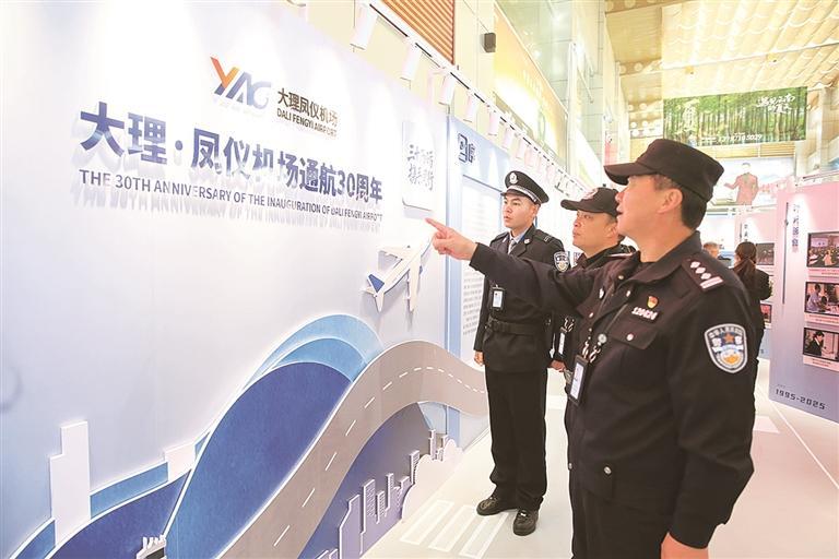 机场分局公安民警参观大理机场通航30周年成就展。(摄于11月28日)