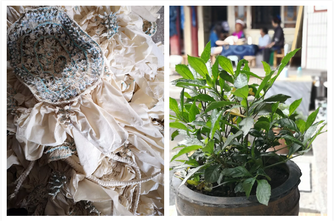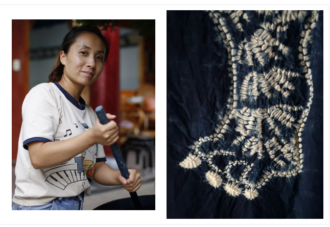 夜深人静的时候,三人拿上工具,轻手轻脚,将黄粪扒开,一捧捧抓回染泥,抬回去藏在村民家中,直到风头过去,重新染布时,派上了大用场。事实上,后来的很长一段时间,村里都是偷偷摸摸地染布,在村民隐蔽的后院偷偷栽种板蓝根,偷偷制作染泥,偷偷绞扎,偷偷晾晒,直到有一天这些技艺传承在光天化日之下……
