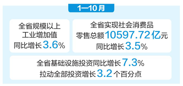 总体来看,随着更加积极有为的宏观政策持续发力显效,1—10月,全省经济运行总体平稳,转型升级扎实推进,发展新动能继续壮大。但也要看到,有效需求偏弱,结构调整仍需聚焦关键矛盾、稳步推进深化。下阶段,全省各级各部门要坚持稳中求进工作总基调,全方位扩大有效需求,着力稳就业、稳企业、稳市场、稳预期,积极推动宏观政策持续落地增效,促进经济质的有效提升和量的合理增长。