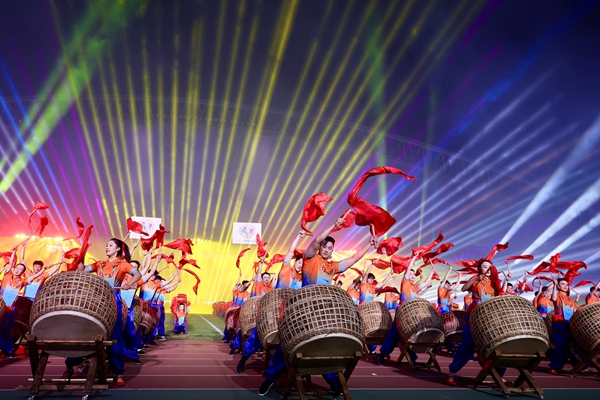 当晚7点15分,玉溪高原体育运动中心主体育场内欢声鼎沸,开赛仪式在大型激光秀和焰火中开场。这是云南首次在球场运用大型激光秀,云南的历史文化和16个州市的特色地标、文旅目的地在绿茵场一一呈现。五百余名年轻人共同演绎鼓舞《鼓动“滇峰”》,激昂的鼓点如同梦想落地的铿锵节拍,为滇超联赛擂响奋进的战鼓。一曲戏歌交融的《活力玉溪》,则展现了玉溪的山水之美与足球的活力之魂相融绽放。