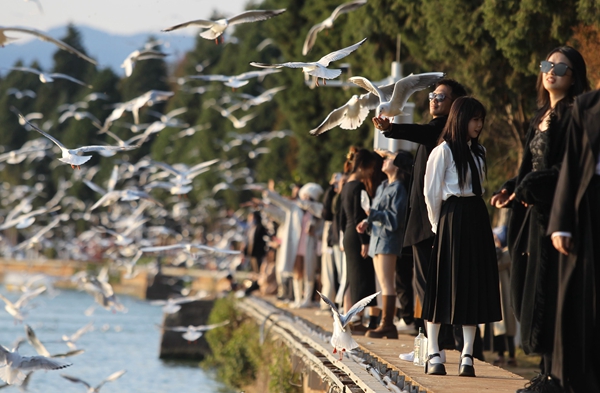 冬日滇池,水波潋滟,候鸟翩跹。沿着108公里的滇池绿道一路骑行,“昆明蓝”掩映下的湖光山色,引得骑友和游人驻足流连。