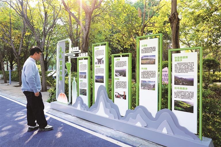 宾川县地名文化主题公园一角,市民正在观看乡镇地名的介绍。(摄于12月2日)