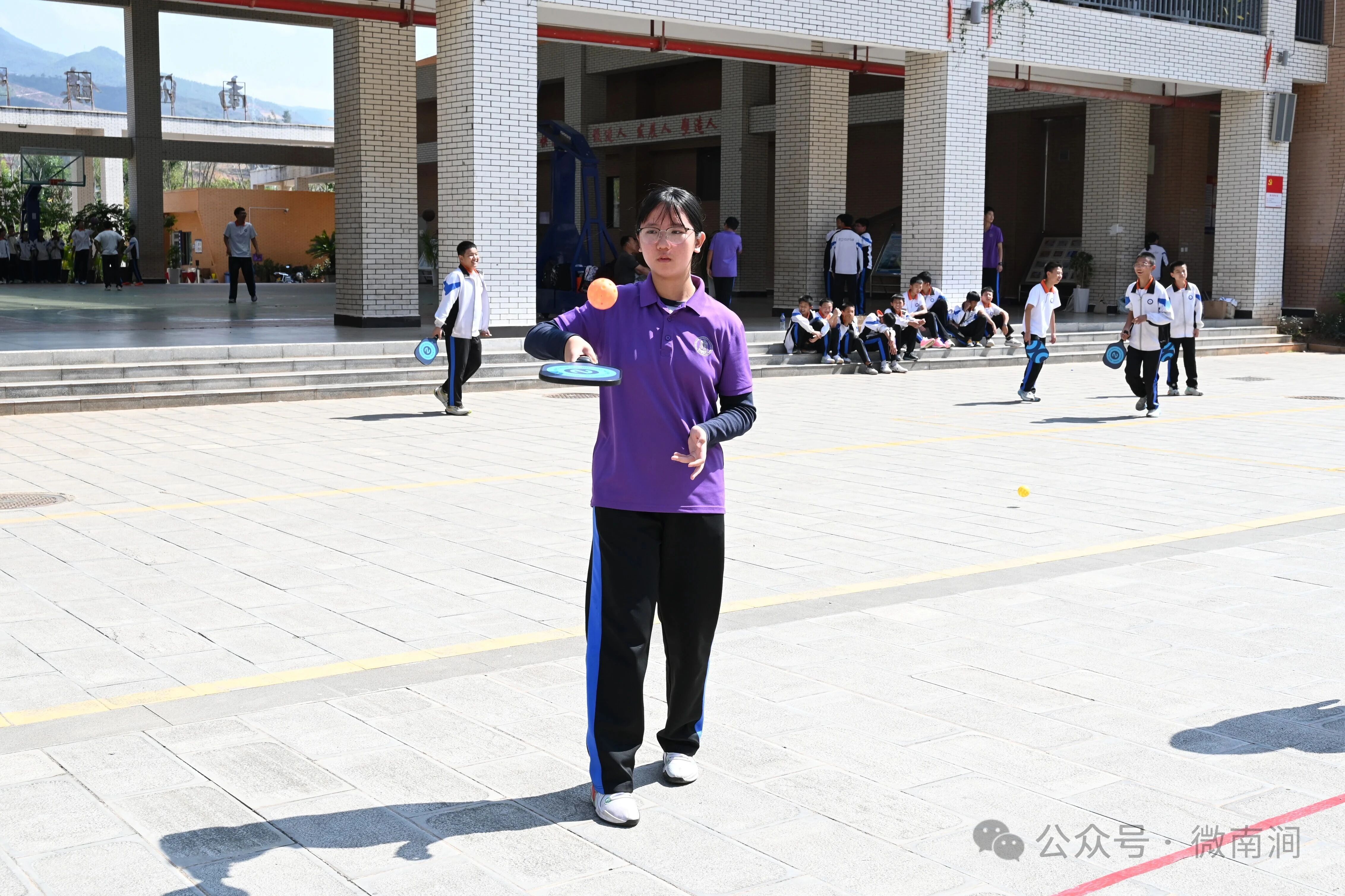 同样来自南涧镇中学的学生华思璇最初抱着试一试的态度参加匹克球活动课,没想到一节课便爱上了这项运动。“匹克球球拍很轻,很容易上手,不用像篮球一样跑来跑去,站在原地就可以打,又有点像乒乓球和羽毛球。”她特别感谢学校开展的匹克球活动课以及搭建的专属场地,“不仅给了我们放松的时间,还能让我们感受到匹克球的快乐和有趣。我们pk的不是匹克球,而是快乐又精彩的人生。”