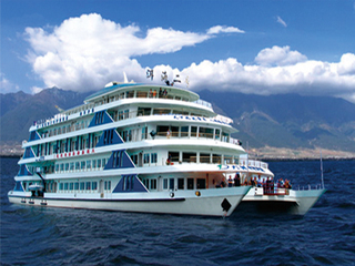 大理旅游集团有限责任公司洱海游船分公司旗下经营管理“大理港码头”、“龙龛码头”、“桃源码头”目前拥有“洱海一号”、“洱海二号”“杜鹃号”、“苍山号”、“大运号”、“海星号”等大型豪华游船和以“金花号”、“大理号”系列的豪华玻璃钢游艇,游船风格多样,造型美观大方,载客量都分别在1000、960、500、600、400人以上。游船有观景厅、歌舞厅、KTV包房、咖啡厅等设施,有“金花”、“阿鹏”热烈欢乐的迎、送宾仪式,游程中举行三道茶歌舞表演,让广大游客饱览苍洱风光的同时,享受到“礼仪之邦”的待客礼仪,领略白族独特的民俗风情和歌舞艺术。