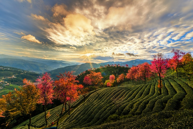 无量山大山深处这个叫“樱花谷”的地方,她的本名叫做“蛇腰箐”,一个先辈们叫了千百年的、甚为曼妙的名字。后来,两位爱茶的台湾茶商来到此地种茶,为遮阴,在种下茶树的同时,还种下了一株株冬樱花。樱花树长成,腊月开花,恣意盎然,与碧绿整齐的茶园相衬,形成了樱花盛景,渐渐的,众人就把这个地方称作“樱花谷”了。而今,无量山茶园的樱花开了,在寒冬腊月时分,开遍了山谷,引来无数摄影高手争相“捕风捉影”,无量山也以别样风情被世人重新认识。