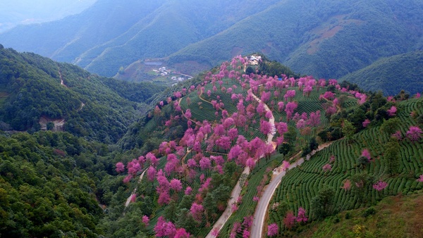 都说,美景藏在边陲。初识无量山,源于金庸先生写的《天龙八部》,在《天龙八部》的开篇中,段誉随普洱茶商马五德来到无山,误入无量剑湖宫,进入石洞看到神仙姐姐塑像,练成“凌波微步”。各大门派也在无量山展开了一段快意恩仇的江湖故事。书中,金庸先生描绘的无量山壮美,山清水秀,风光旖旎,物产丰富。无量山,在金庸先生笔下占尽了风头。后来,无意间在朋友圈看到别人转发的无量山樱花谷图片,只觉内心为之一震,茶园和樱花竟还能如此相得益彰,以雄伟壮丽的无量山为背景,茶园衬着樱花、樱花伴着茶树,仿佛恋人般相互偎依、倾诉情意,这个叫樱花谷的地方自此就魂牵梦萦般地萦绕在心头。