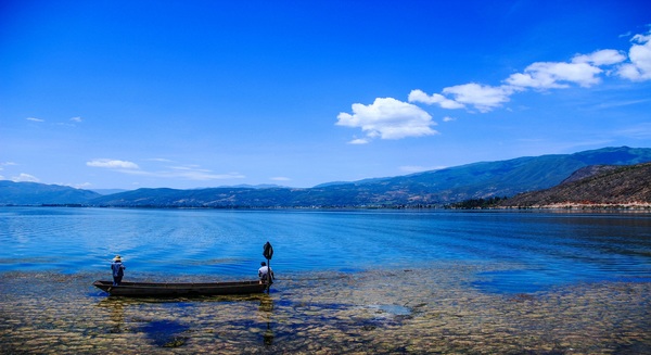 地热国门口正对着茈碧湖,出门左行,便是绕湖了。在旁边找了家食肆,开始大啖美食了。吃完饭后按照路标的指示,可以步行去茈碧湖码头,估计路程用时20分钟左右。茈碧湖码头,车是相当的多的,人却很少。据说是很多人开车过来这边垂钓的。由于淡季,凑不够8个人的话,完全不能按正常价格(普通船25元/位,快艇30元/位)执行,一趟230元。