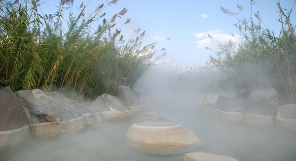 园中心有一个水温达88度的大滚锅,热气腾腾,云蒸霞蔚,让人们在沐浴温泉时,感受到丰富的健康文化、养生文化和休闲文化。