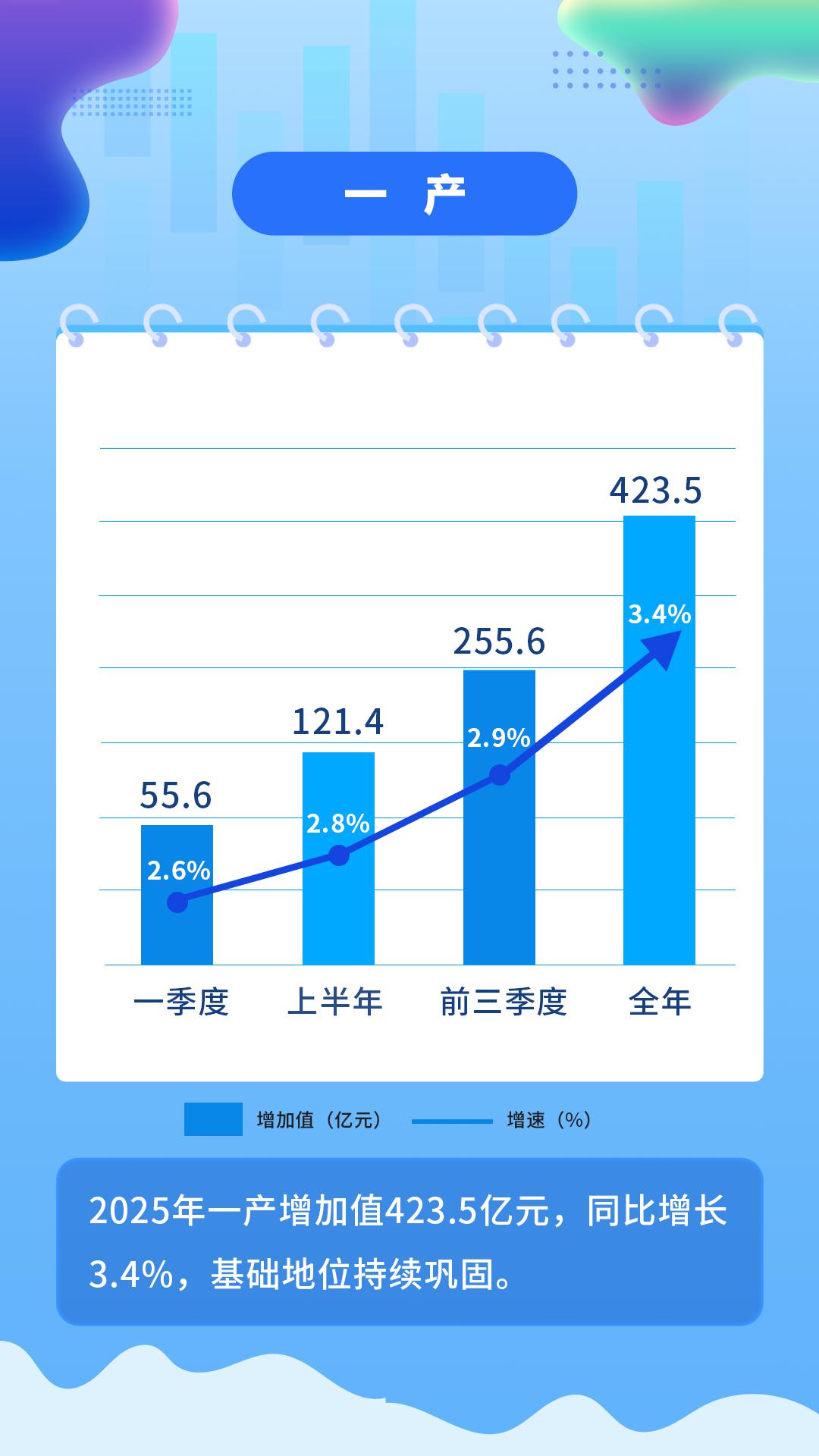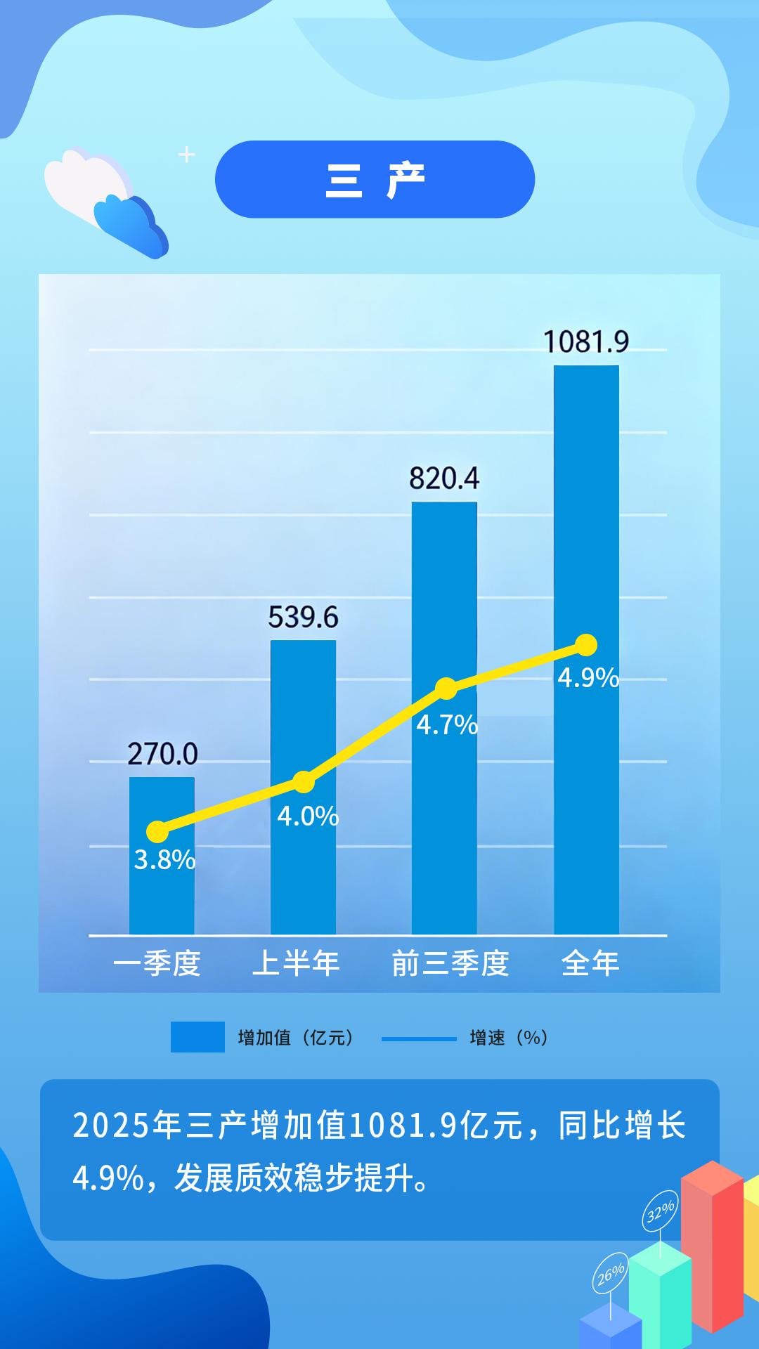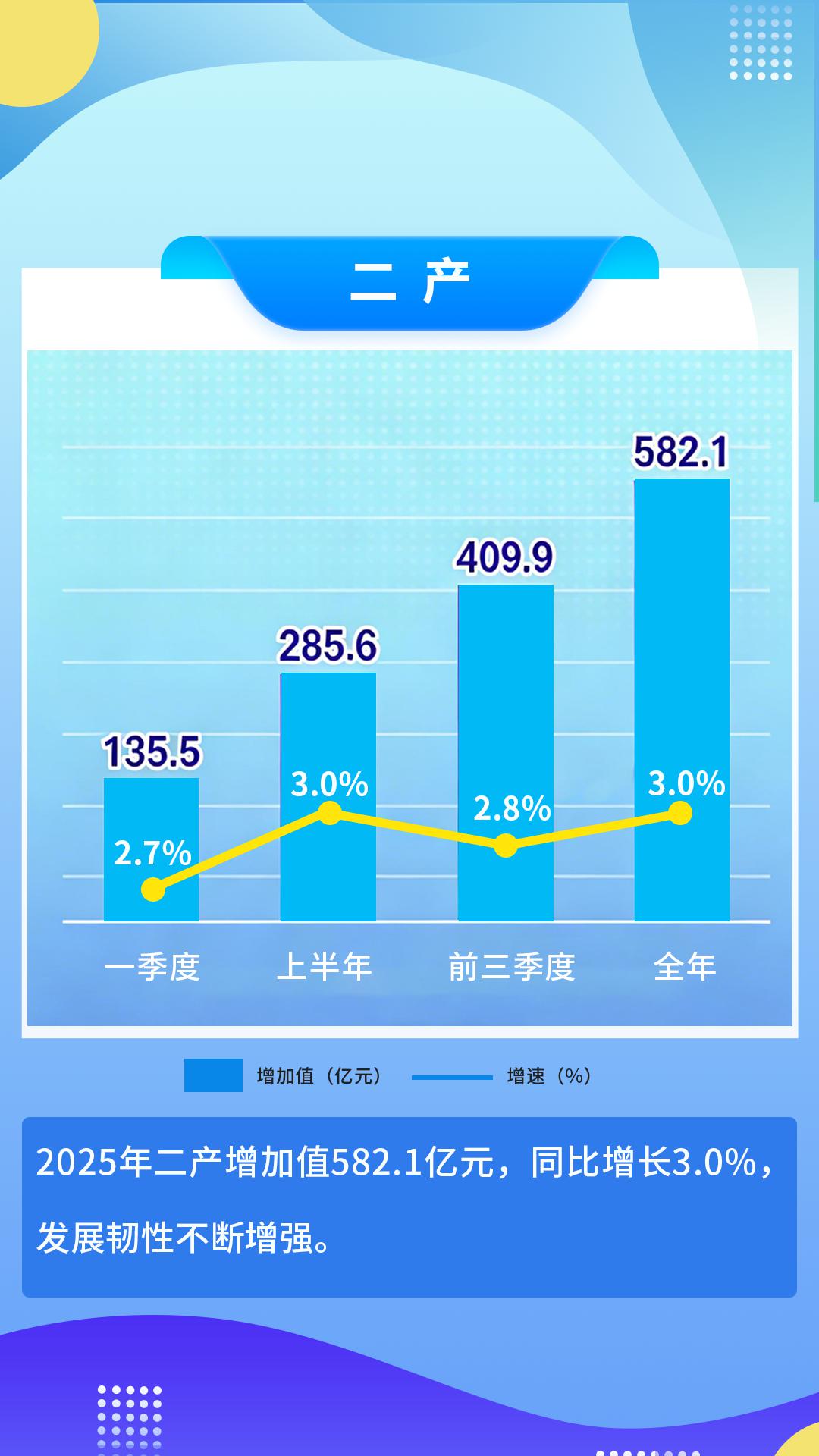 根据地区生产总值统一核算结果,2025年全年大理州实现地区生产总值2087.5亿元,按不变价格计算,比上年增长4.1%。分产业看,第一产业增加值423.5亿元,增长3.4%;第二产业增加值582.1亿元,增长3.0%;第三产业增加值1081.9亿元,增长4.9%。>>>大理州2025年GDP公布!