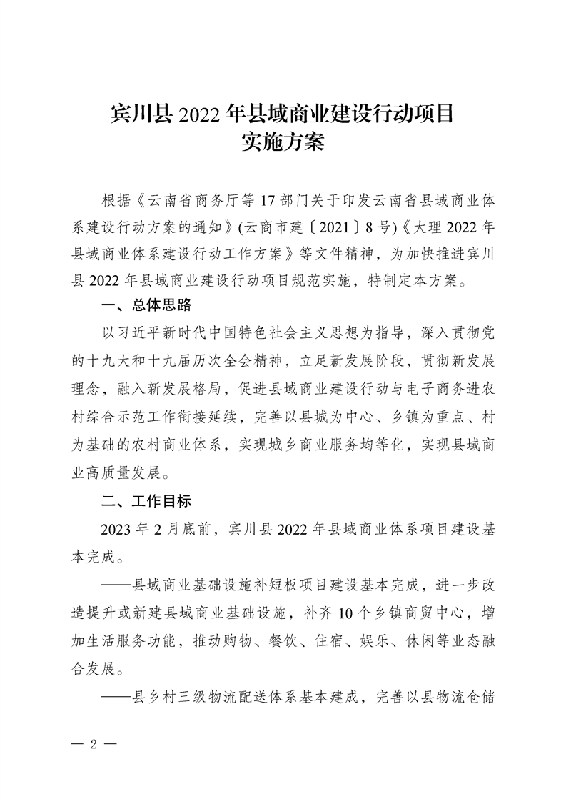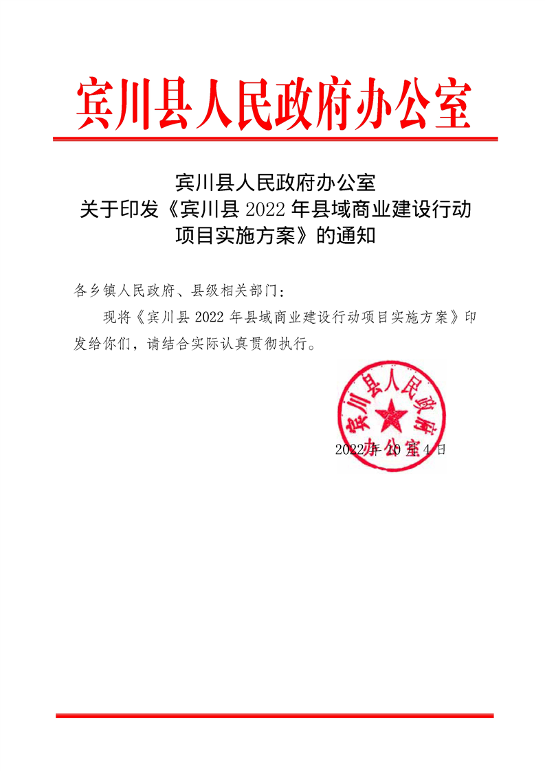 宾川县人民政府办公室关于印发《宾川县2022年县域商业建设行动项目实施方案》的通知