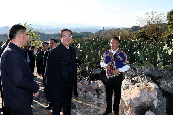 12月18日至19日,王宁到文山州调研。图为王宁在文山市红旗社区庄子田村仙人掌种植基地,与返乡创业、带领群众致富的村支书鲁春红深入交流。