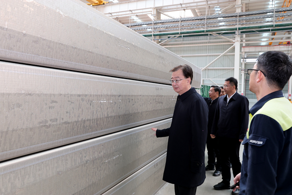 王宁来到砚山县云南绿色铝创新产业园,在云南宏泰新型材料有限公司调研铝材精深加工延链情况。