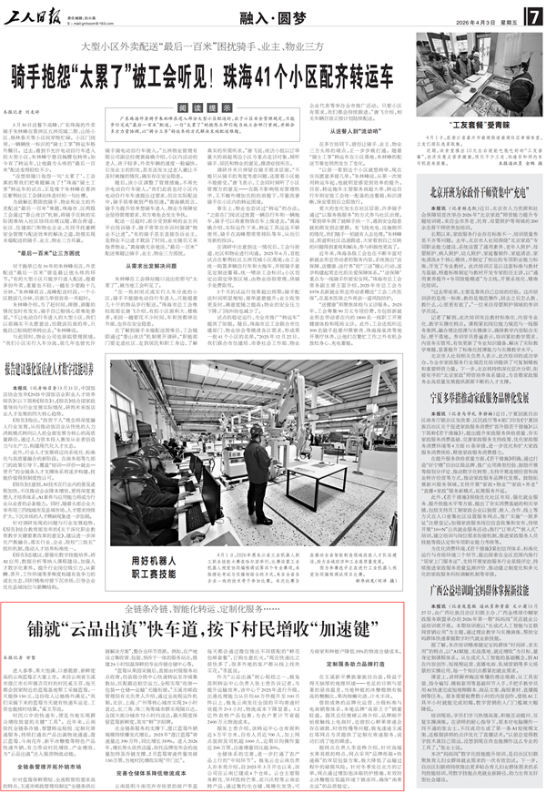4月3日,《工人日报》关注云南持续打通农产品出滇物流通道,有力带动村民增收、产业增效,刊发文章《全链条冷链、智能化转运、定制化服务……铺就“云品出滇”快车道,按下村民增收“加速键”》。
