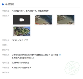 2026年1月24日,有群众通过“洱海卫士”小程序反映:在云南省大理白族自治州大理市双廊镇青山村环海路旁,存在排污口向洱海直排污水的情况。